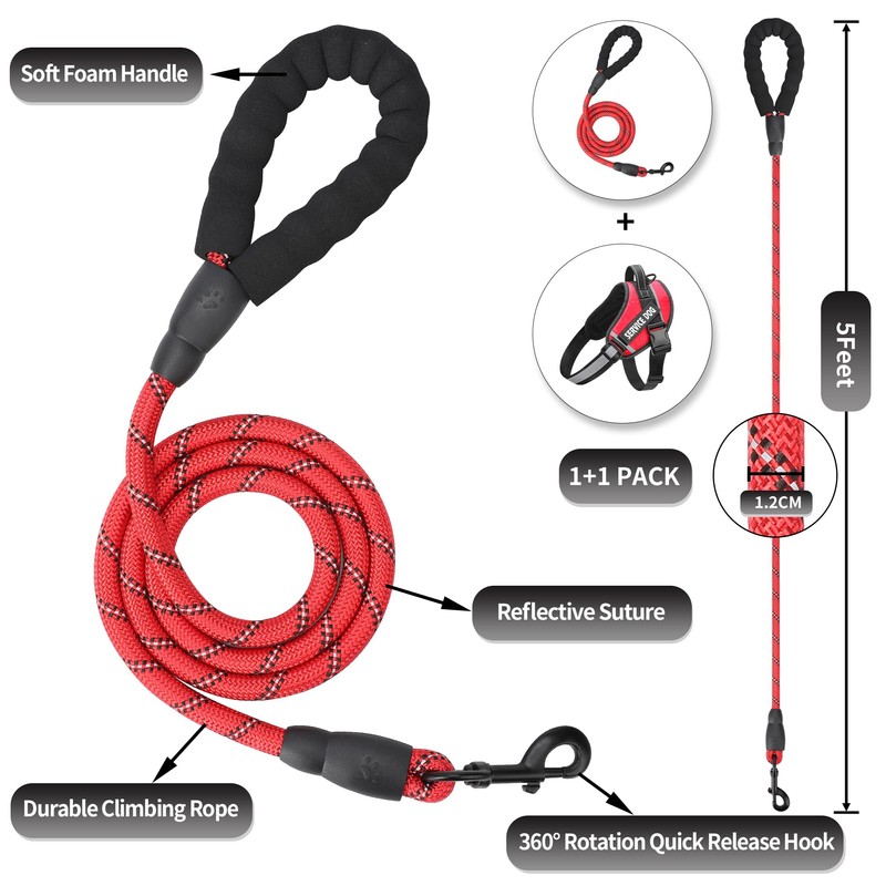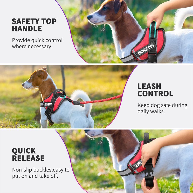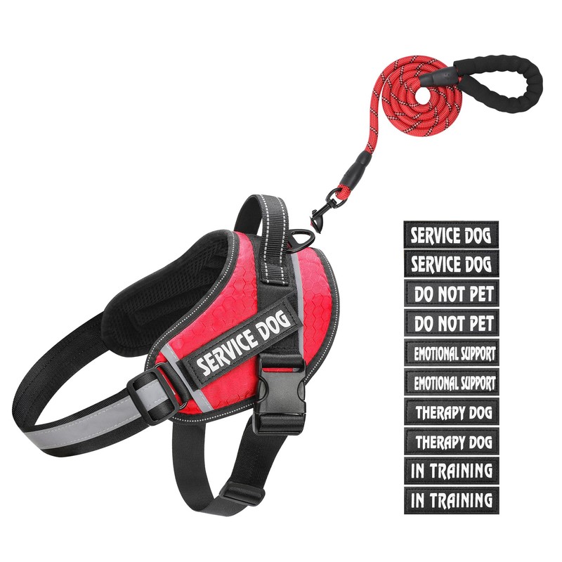 - WHAT WILL YOU GET: The dog harness set comes with a service dog harness, a 5-feet dog leash, and 10 bright dog Velcro patches such as "DO NOT PET", "IN TRAINING", "THERAPY DOG", "SERVICE DOG", and "EMOTIONAL SUPPORT". You can apply 2 patches at a time to express your dog's personality and emotions, or display useful information on your dog harness