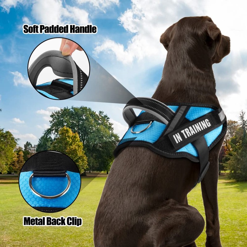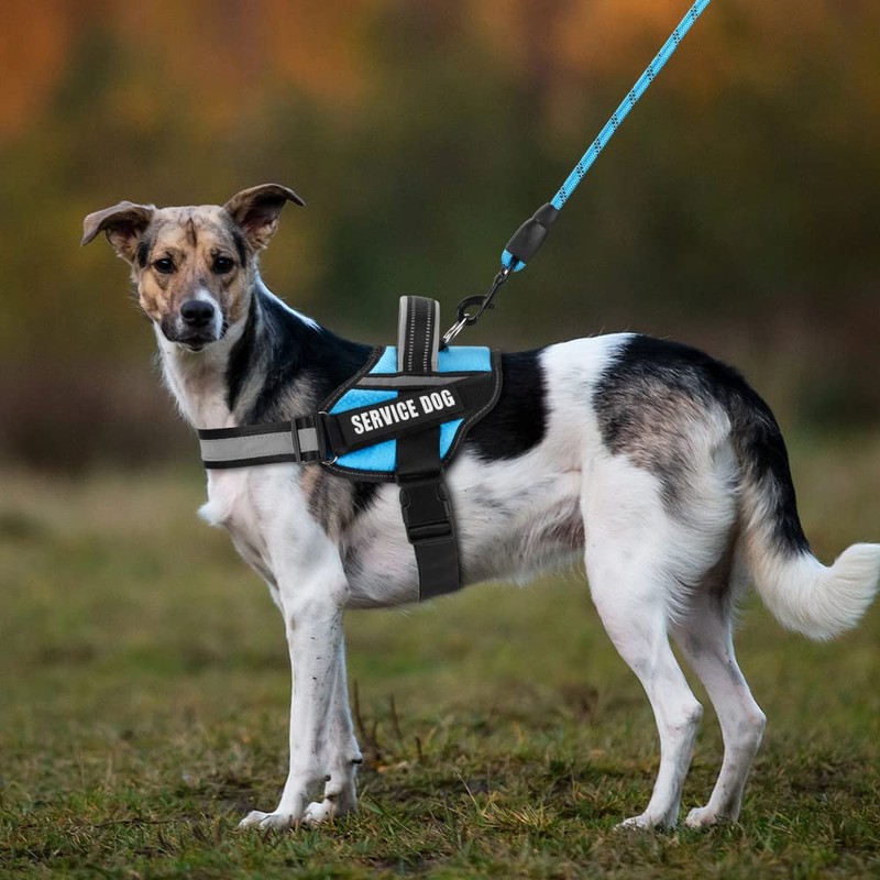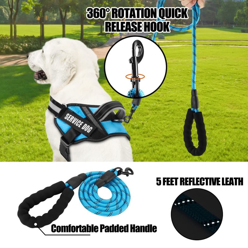 Service Dog Vest Harness and Leash Set, Animire in Training Dog Harness with 8 Dog Patches, Reflective Dog Leash with Soft Padded Handle for Dogs (Light Blue,L)