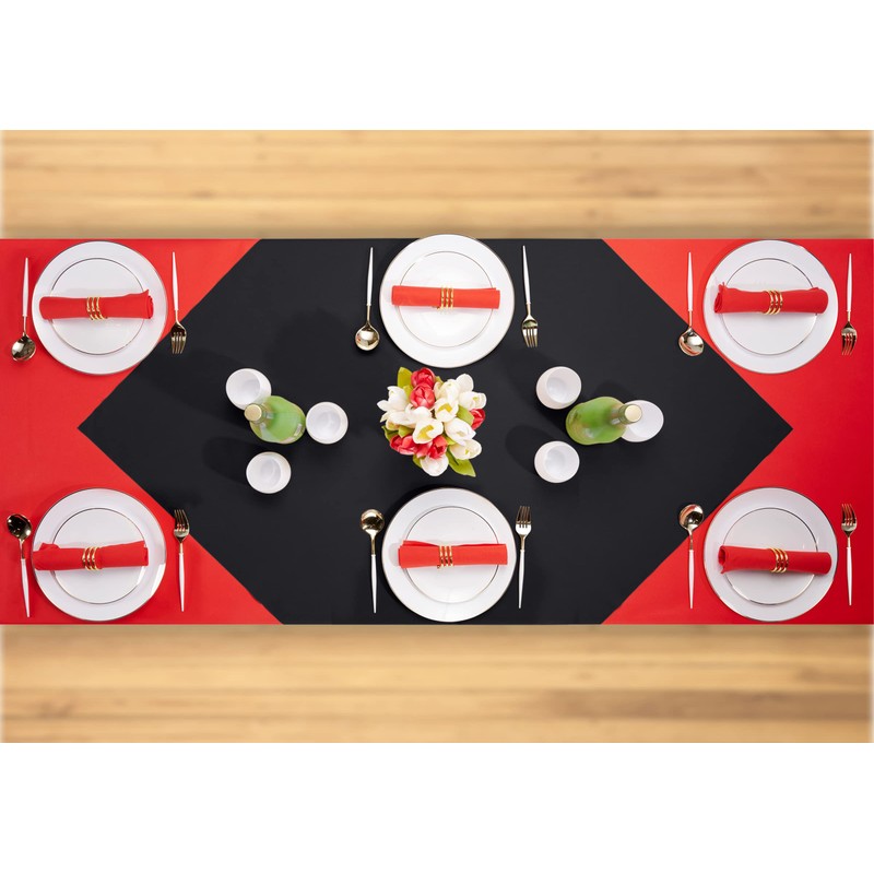 making cleanup a breeze. No need to worry about washing, fraying or stains. You can enjoy your event and leave the cleaning to us.Upgrade your table setting and make your next event unforgettable with our premium table runner – perfect for bringing a touch of luxury and elegance to any occasion. Don't settle for plain, flimsy tablecloths, make a statement and impress your guests with this one.