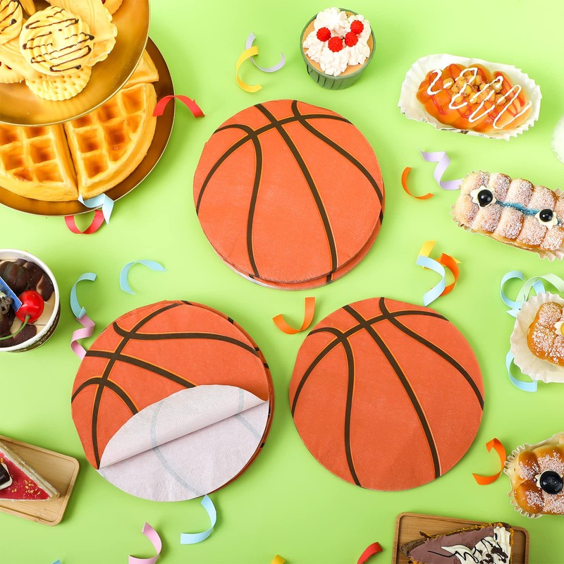 - Diseño de baloncesto: nuestras servilletas de fiesta presentan la forma y el patrón de baloncesto, simples y elegantes, modernas y delicadas, desechables y atractivas, agregarán más diversión y alegría a su próxima fiesta de cumpleaños de baloncesto