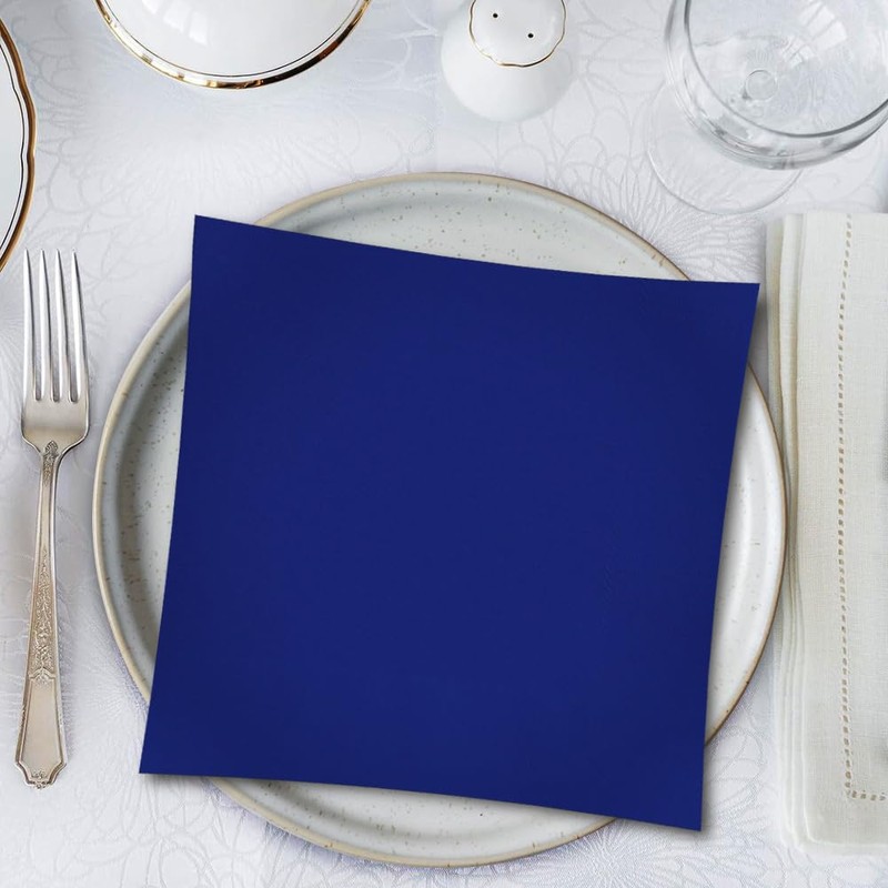 - Auténtica elegancia azul marino: añade un toque de sofisticación a tu evento con estas hermosas servilletas de papel sólido azul marino. Su color vibrante es perfecto para mejorar la decoración de tu fiesta y crear un ambiente acogedor para tus invitados.