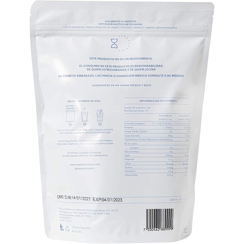 SESĒN Colágeno Hidrolizado en polvo + Vitamina C + Magnesio+ Glucosamina Bolsa con 500 g