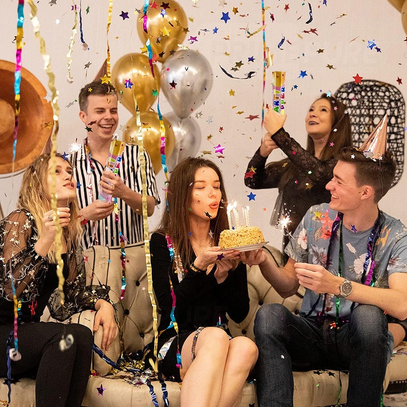 - 4 Pieces Confetti Cannons Included: confetti cannons set includes 5 pieces, large quantity and affordable. The confetti is colourful with bright and vibrant colours and will not be monotonous.