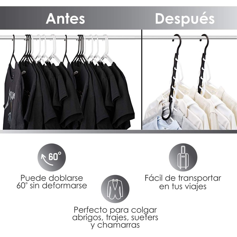 Set de 10 Perchas Magicas para ahorrar espacio, Ganchos Para Ropa Multiple Ahorra Espacio, Organizador de perchas para guardarropa, Ganchos Organizadores de ropa en cascada, multifuncionales.