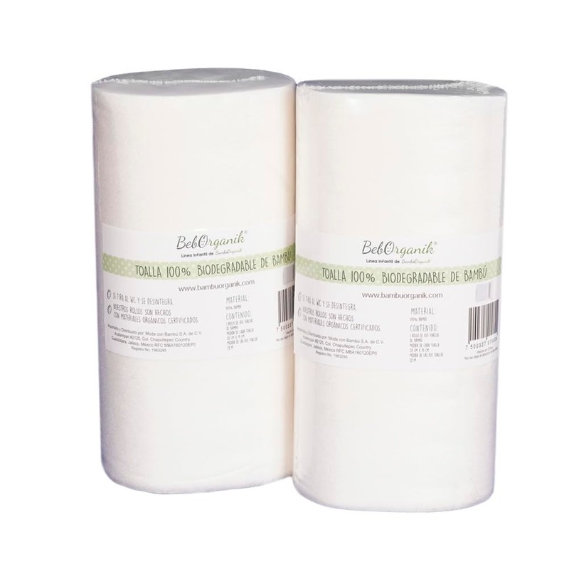 Set De 2 Rollos Con 100 Toallas De Bambú Pre-cortada