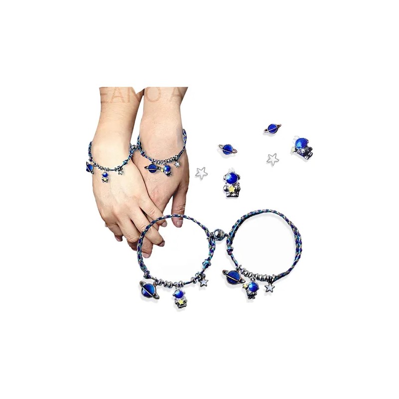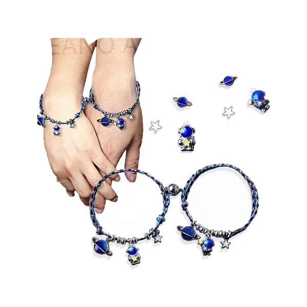 Diseño exquisito: lindos astronautas y estrellas hacen que esta pulsera sea más atractiva. Dulce promesa: no importa cuán lejos esté nuestra relación, cuando usamos un brazalete magnético, podemos recordar el profundo amor y las promesas del otro. Imagínese lo dulce que verá su pareja o amigo esta pulsera.