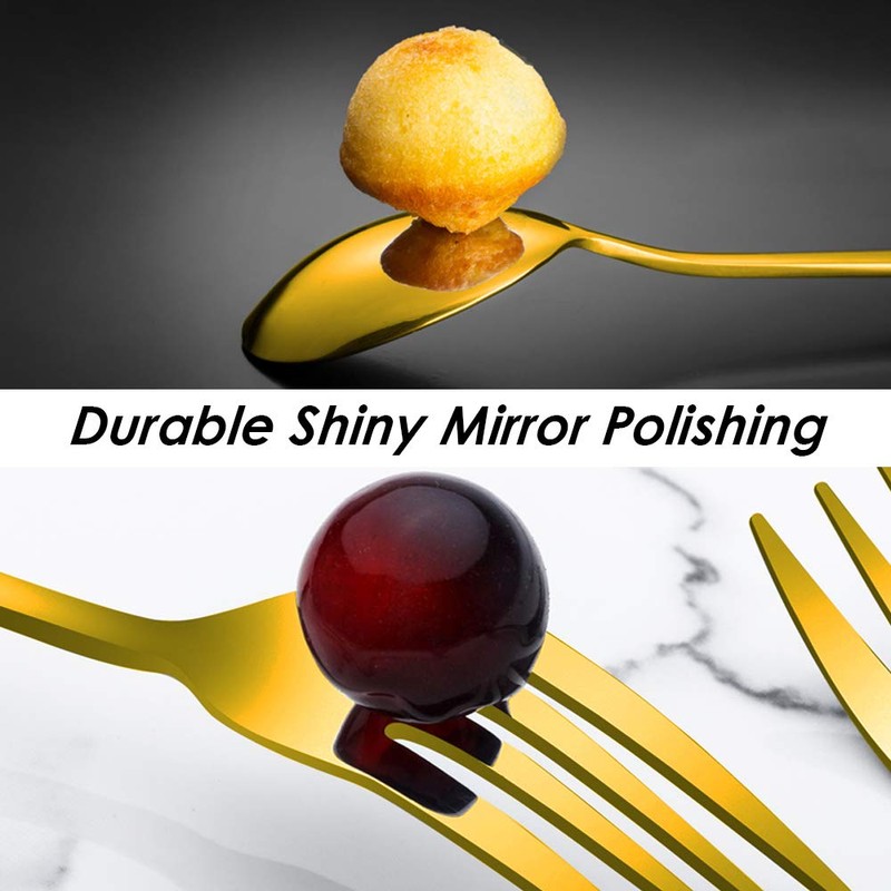 Set of 12, Gold Plated Stainless Steel Dinner Forks and Spoons, findTop Heavy-duty Forks (8 Inch) and Spoons (7 Inch) Cutlery Set- Gold