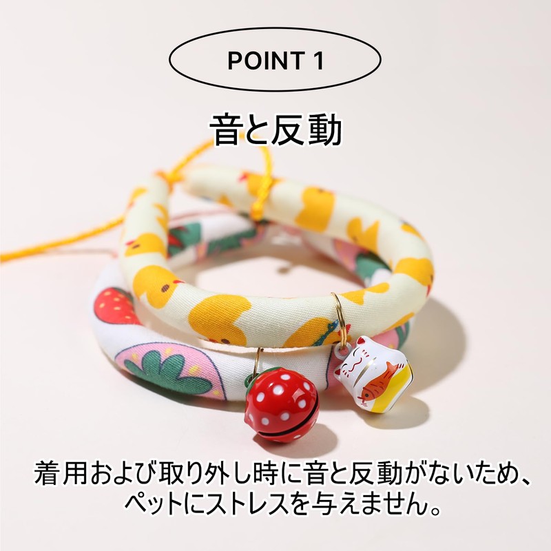 Set of 2 Cat Collars with Bell, Soft Round Design, Safe Brake Away Bell, Quiet and Comfortable Wearing, Japanese Duck Print and Strawberry Print Adjustable 7-12 Inches