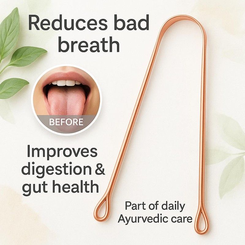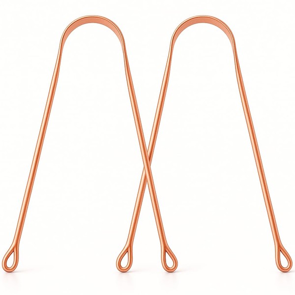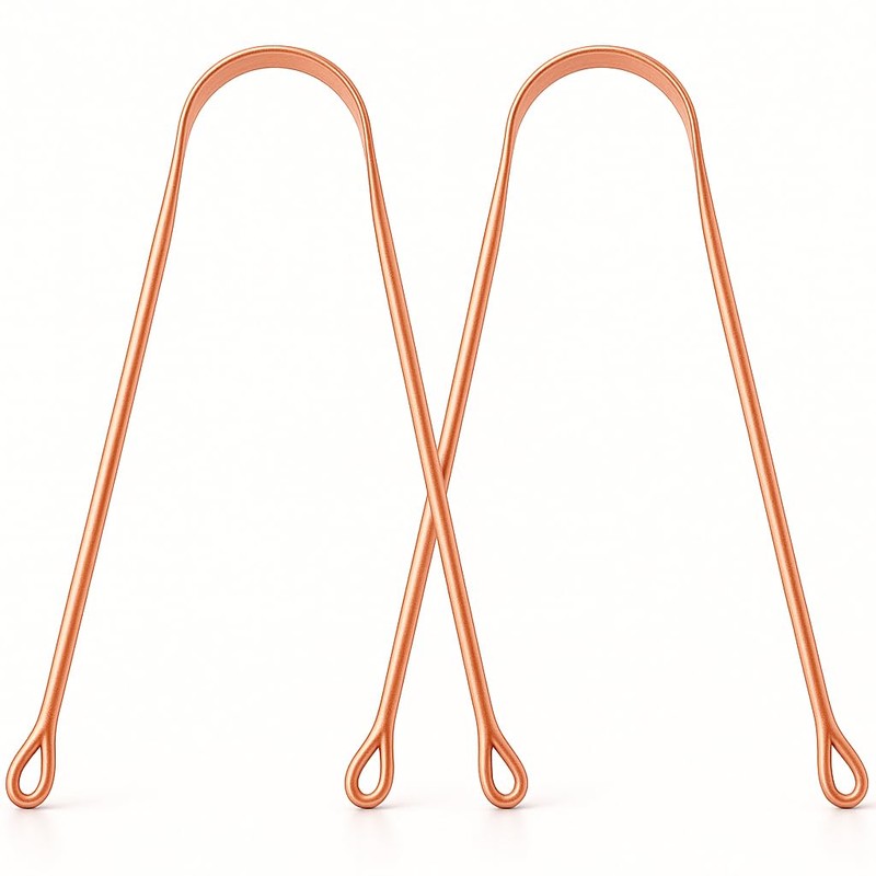 Set of 2 Copper Tongue Scraper with Travel Cases, 2 Pack, Oral Care Cleaner for Adults