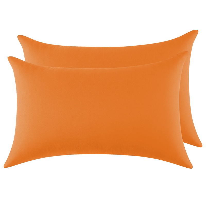 Set of 2 Cushion Covers, 100% Cotton, 40 x 70 cm, 2 Pieces, Super Soft Premium Jersey Pillowcase, Orange