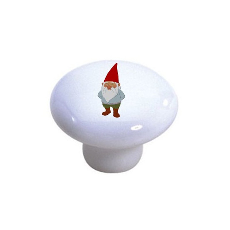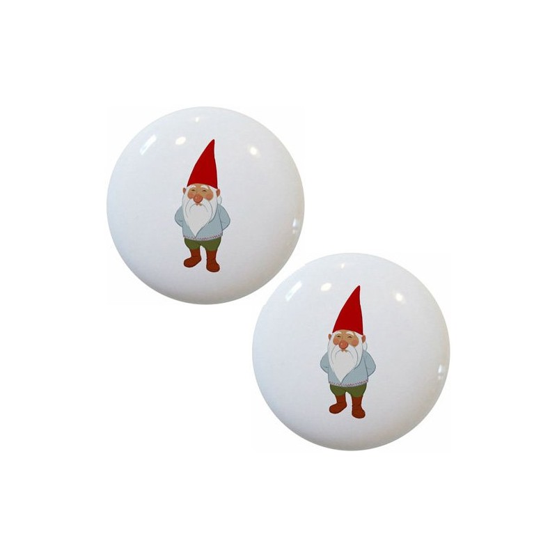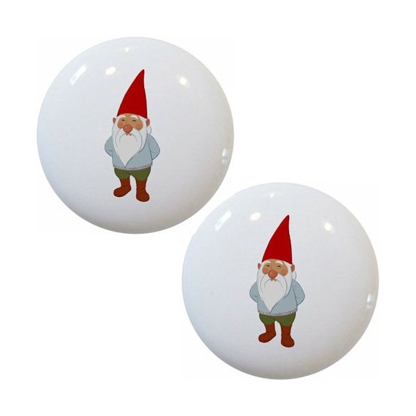 Set of 2 Gnome with Red Boots Ceramic Cabinet Drawer Pull Knobs