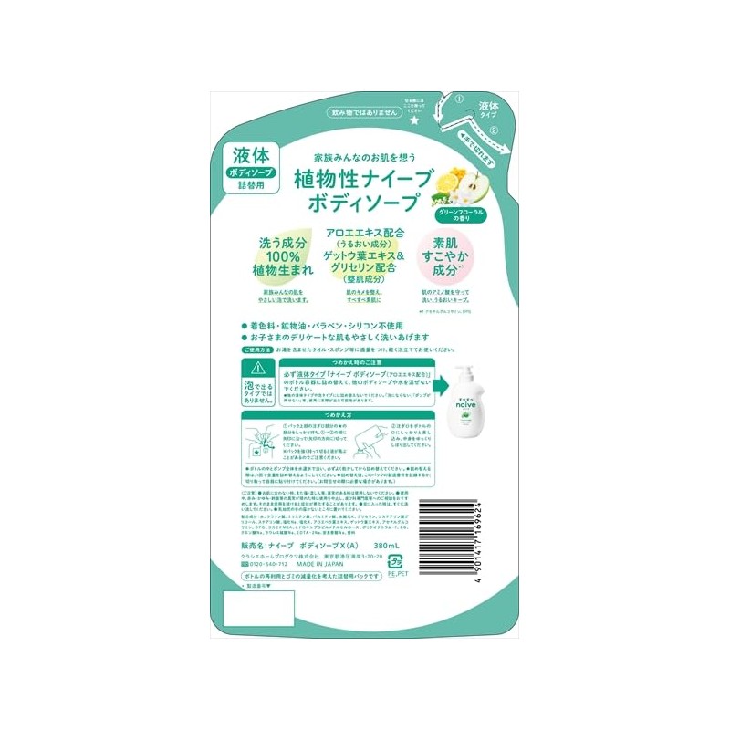[Set of 2] Naive Body Soap (Aloe Extract Blended), Refill, 12.8 fl oz (380 ml)