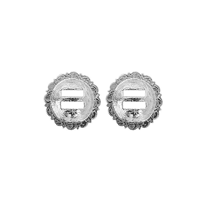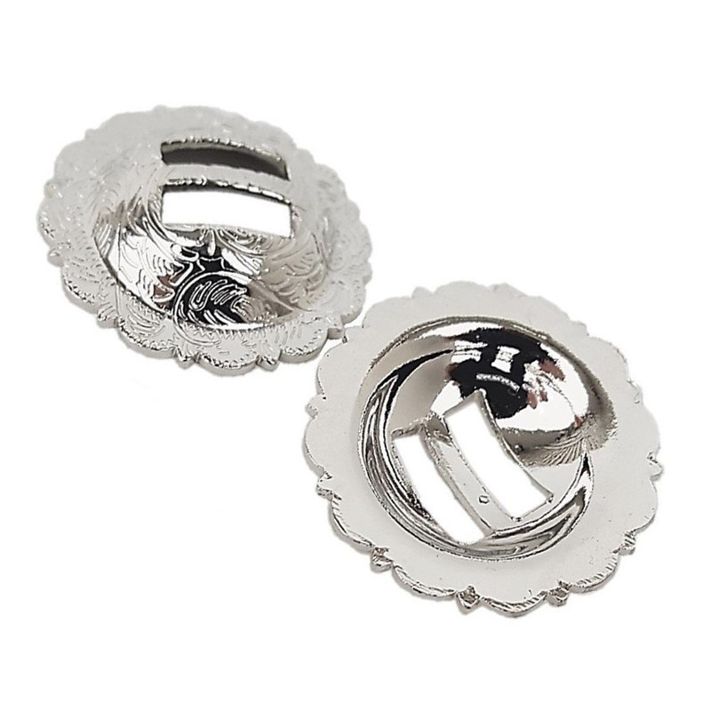 Set of 2 pcs 1-1/4" Saddle Bright Silver Round Slotted Berry Concho