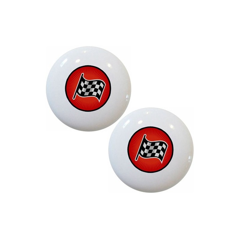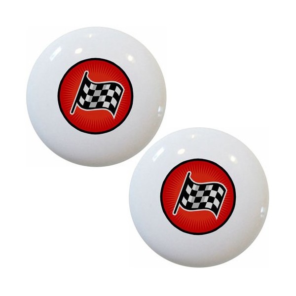 Set of 2 Red Racing Checkered Flag Ceramic Cabinet Drawer Knobs