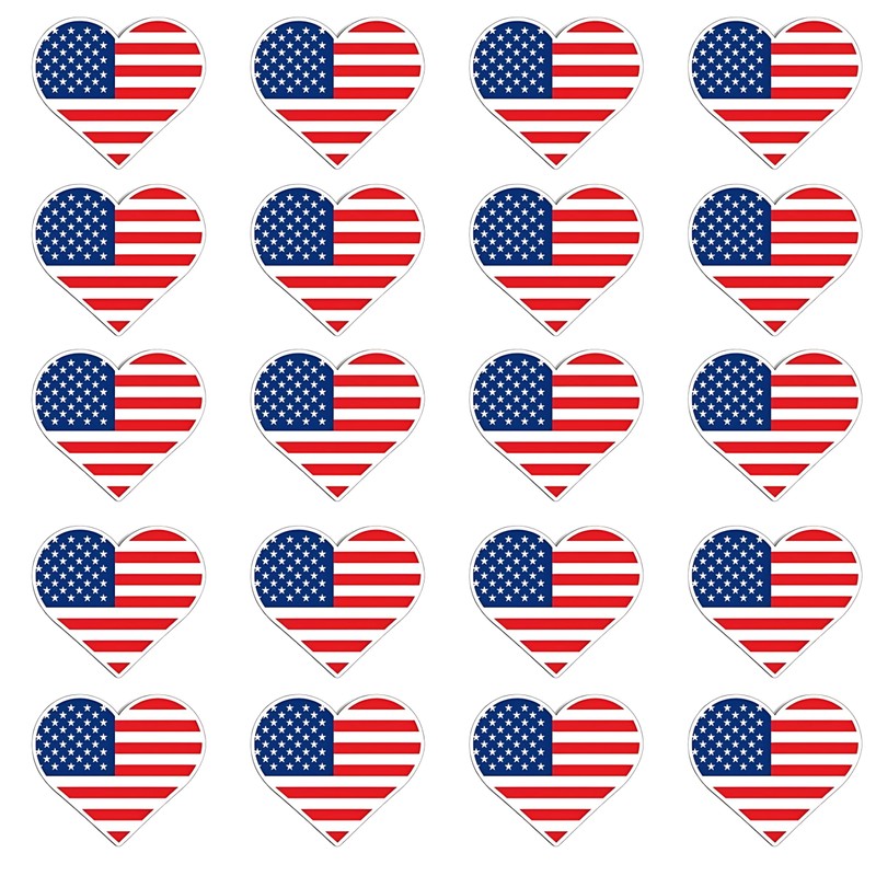 Set of 20 Pcs of Miniature American Flag Heart Stickers – Perfect for Patriotic Crafts, DIY Projects, Party Decorations, Scrapbooking, and Celebrating National Holidays in Heart