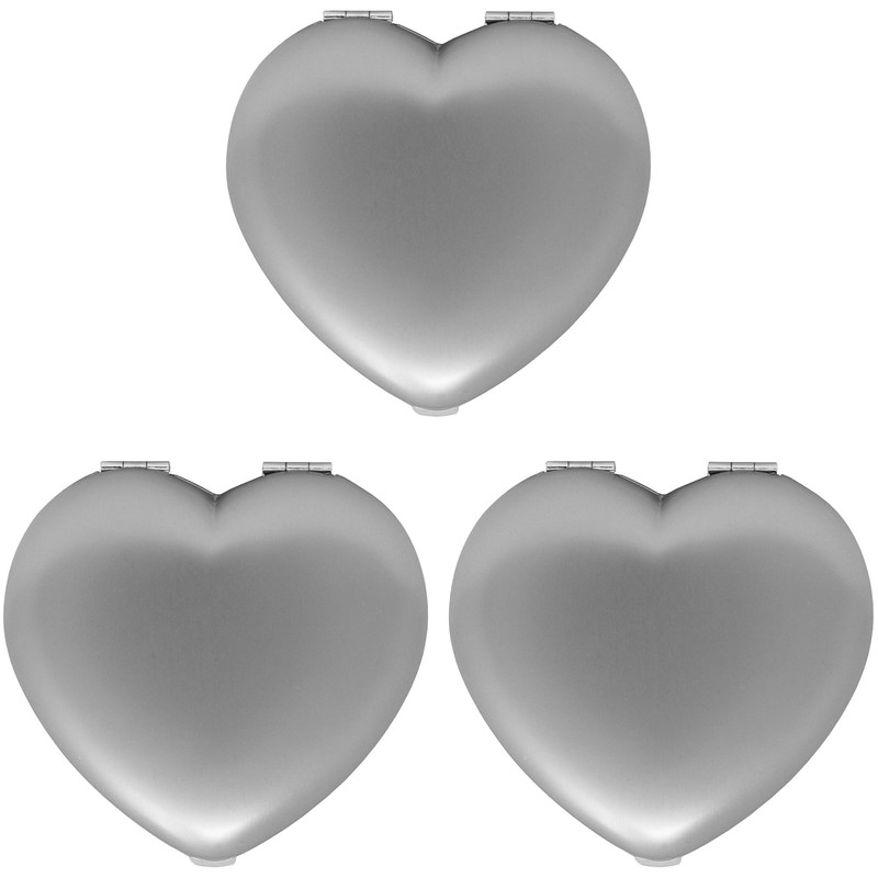 Set of 3 Contemporary Heart-Shaped Compact Mirrors with Reflective Finish (Silver)