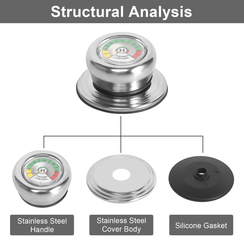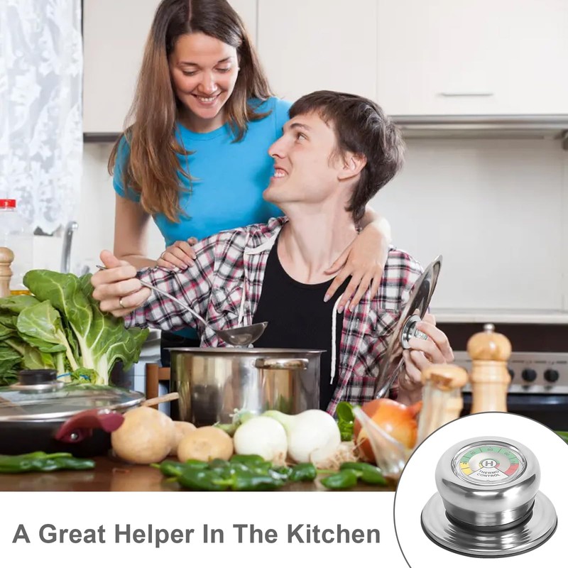 - High-quality pot lid handle: the universal pot lid knobs are made of high-quality stainless steel, sits comfortably in the hand, is heat-resistant and corrosion-resistant, with smooth surface and reliable material to ensure reliable product quality. The pot lid knobs are equipped with an integrated pot lid thermometer for gentle cooking of food and is therefore ideal for everyday use in the kitchen.