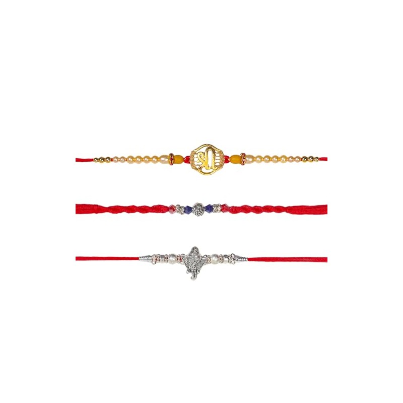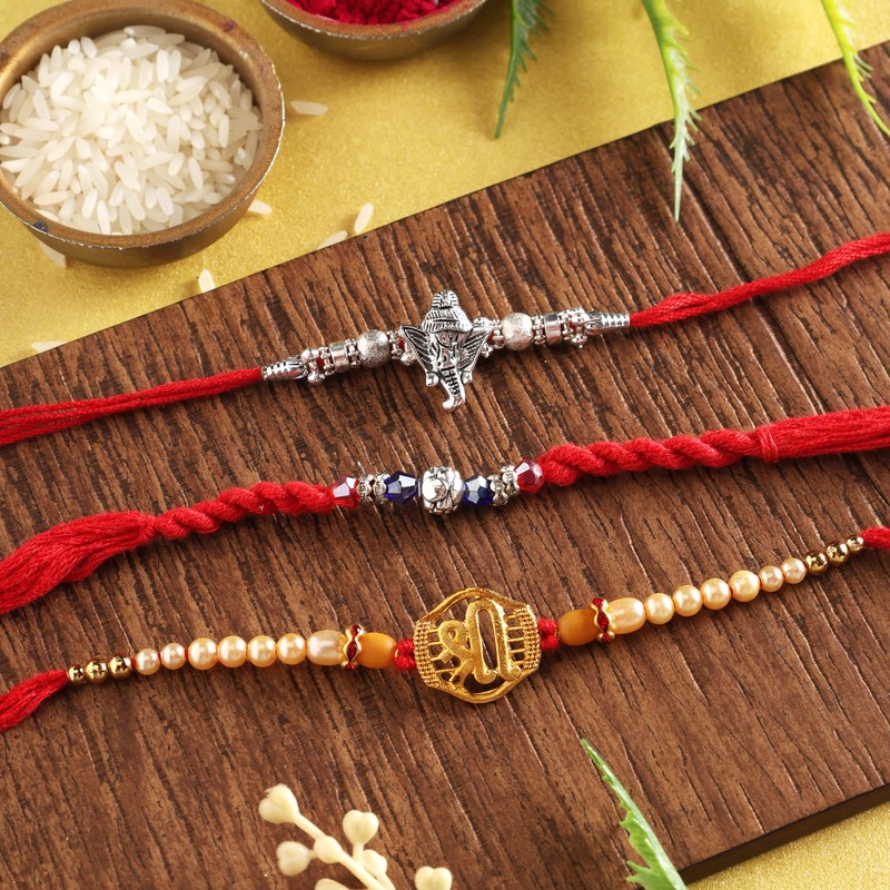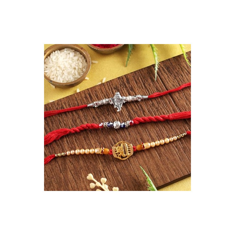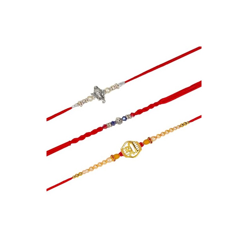 Set of 3 Rakhi for Brother & Sister Shree Rakhi for Boys Brother Rakhi for Little Brother | Raksha bandhan Ganesh Rakhi Bracelet for Brother Rudraksha Rakhi for Bhaiya Rakhi Set | TRBCARK02