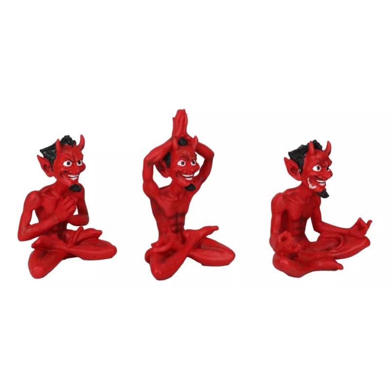 Ebros Set of 3 Red Demon Imp Devils in Yoga Lotus Meditation Poses Figurines