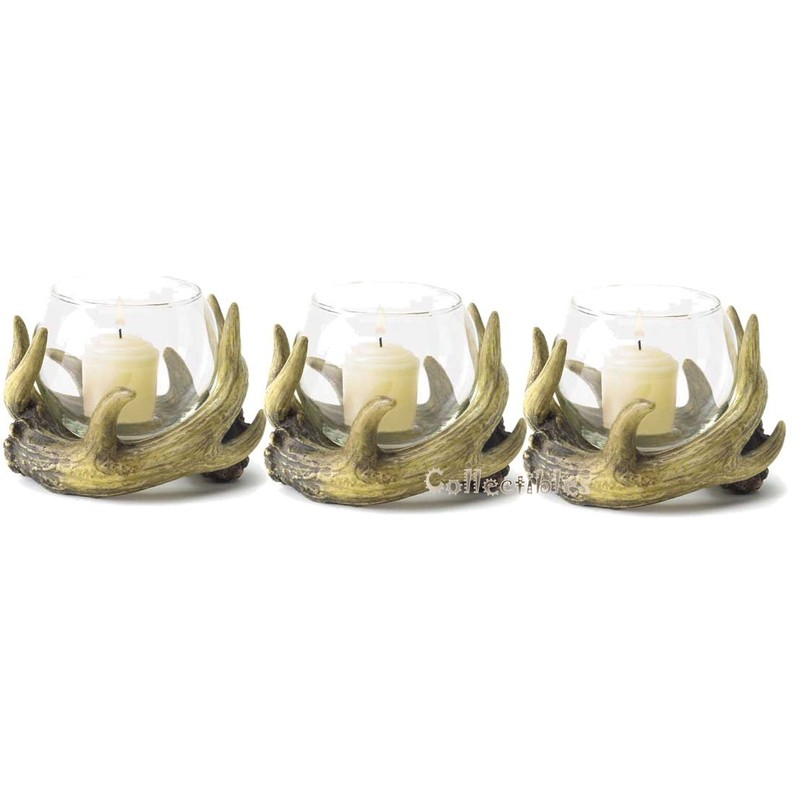Set of 3 Rustic Antler Cabin Lodge Deer Buck Candle Holder Decor