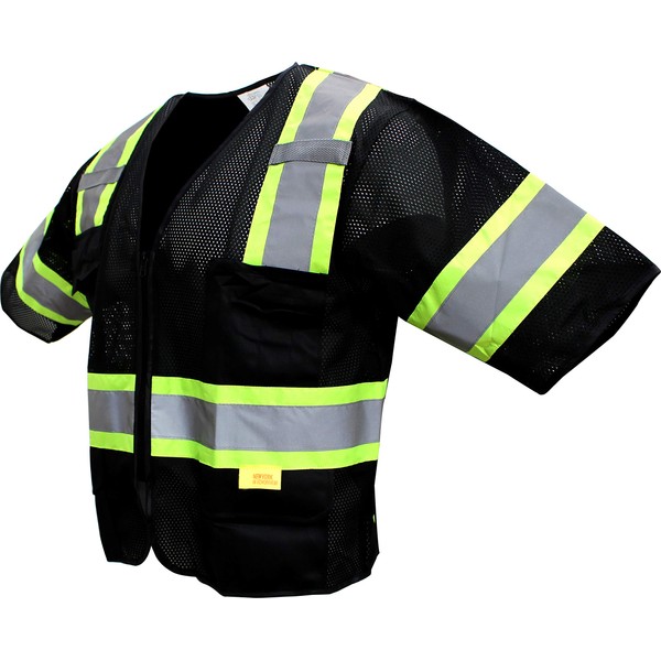 (Set of 3) Troy Safety MV7813 Class 3 Two Tones High Visibility Reflective Strips Breathable Ployester Mesh Vest W/Pockets | ANSI ISEA 107-2015 Certified (L, Lime)