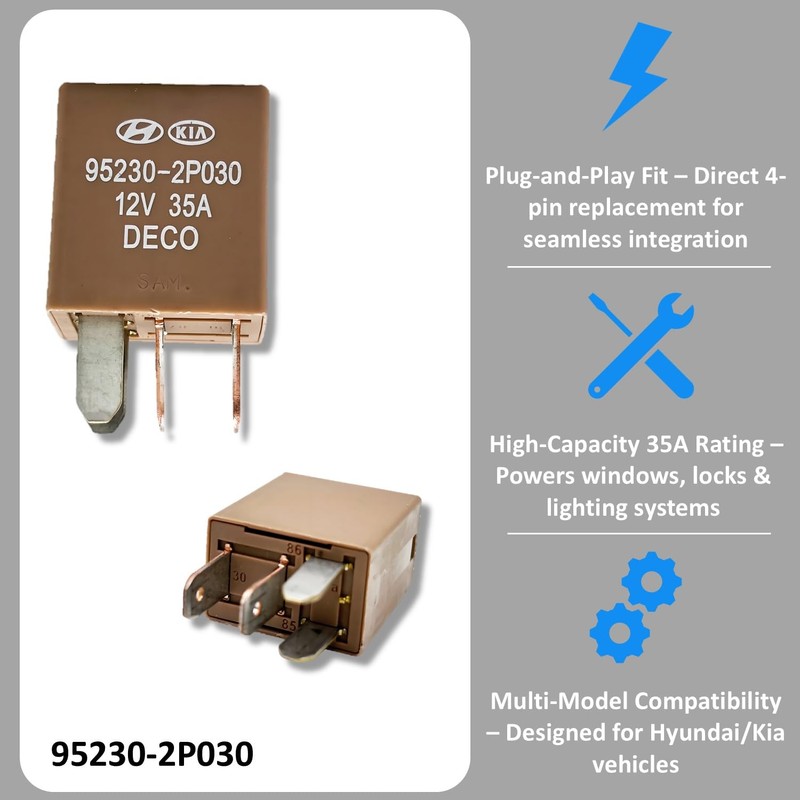 - Precision OEM Standard: Crafted to meet OEM specifications, the 95230-2P030 relays provide a direct replacement option that functions and fits just like the original components.