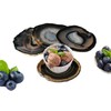 - NATURAL &UNIQUE:Each slice coasters is Irregular shape, close to round or arc as a whole . Some have druzy holes in middle, some may not, due to natural material ,each agate slice will vary slightly in size and characteristics .Each agate sliced is hand cut and polished .