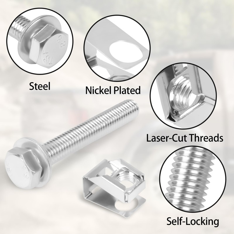 • High-Strength Heat-Resistant Alloy: Crafted from premium alloy steel with anti-rust coating, these flange bolts and U nuts resist heat, corrosion, and vibration—ensuring long-term durability even under extreme exhaust system temperatures and engine movement.