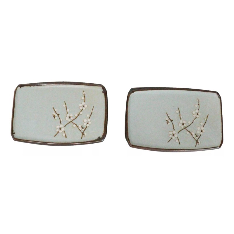 Set Of 4 Japan Made Sakura Cherry Blossoms Porcelain Rectangular Serving Plates