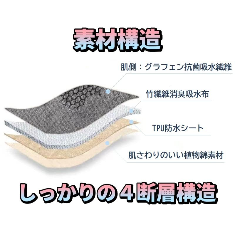 - Specifications: Size: 10.2 inches (260 mm). Material: 4-layer graphene fiber fabric (water absorption + water storage + waterproof + deodorizing). Washing Instruction: Hand wash below 30℃ and machine washable