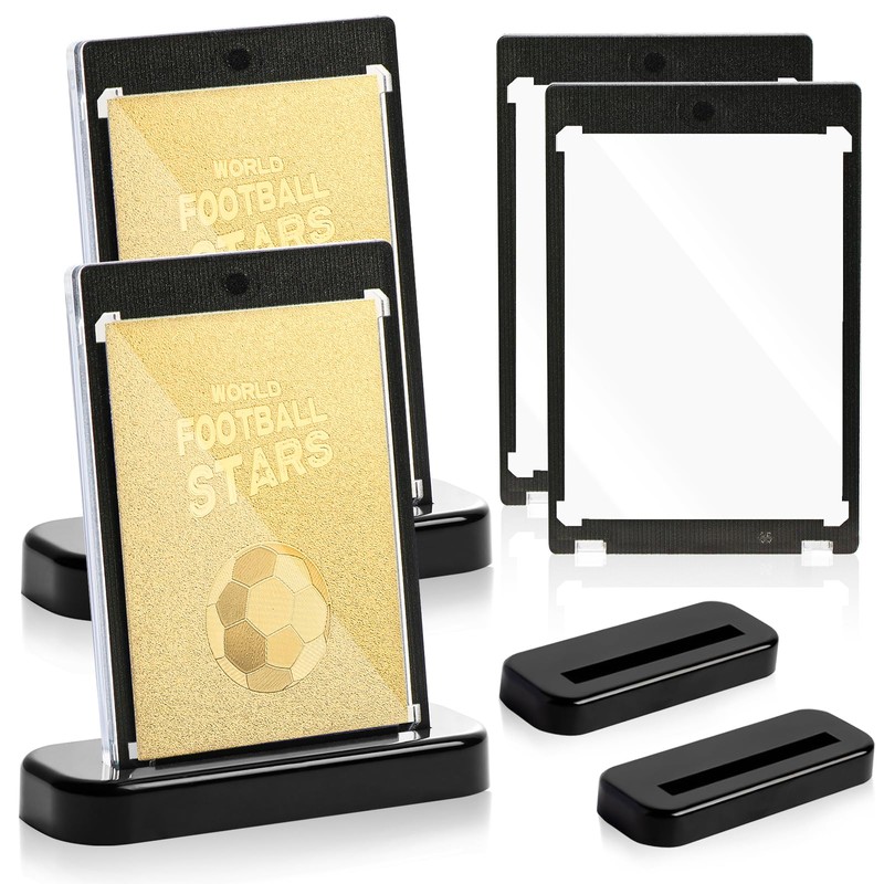 Set of 4 Magnetic Card Holders 35PT Acrylic Black Magnetic Card Holder with Trading Card Stand Acrylic Trading Card Sleeves Card Saver for Top Loader Cards Trading Cards Sports Cards