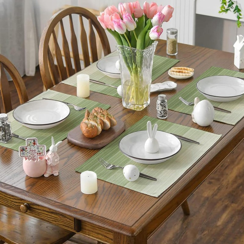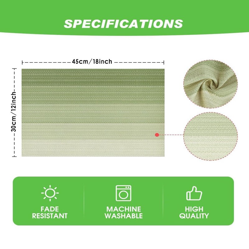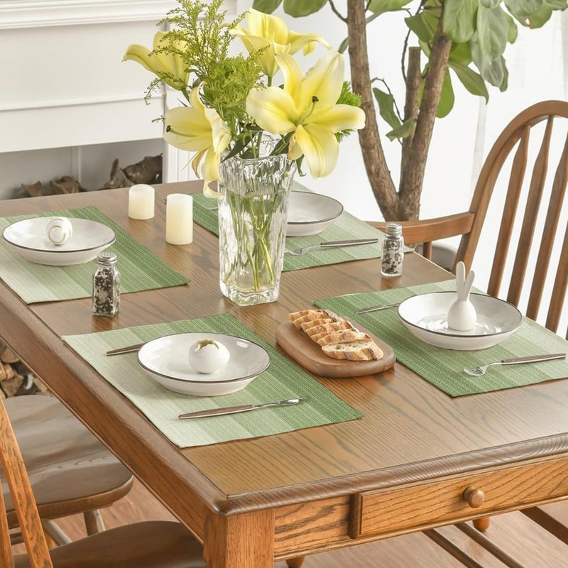 - Suitable occasions: vibrant placemats that are ideal for parties, banquets and everyday use. Ideal for combining with wooden or glass tables, cabinets, TV consoles that can be placed in the kitchen, living room or outdoors. Matches well with dark wooden table, glass table, white dining table, wooden farm table, brown dining table.
