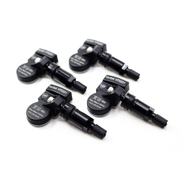 Set of 4 Veritek VPS001 TPMS 433mhz Tire Pressure Sensors for Genesis G80 G90 GV70 GV80 52933D2100 w/Black Aluminum Valve Stems