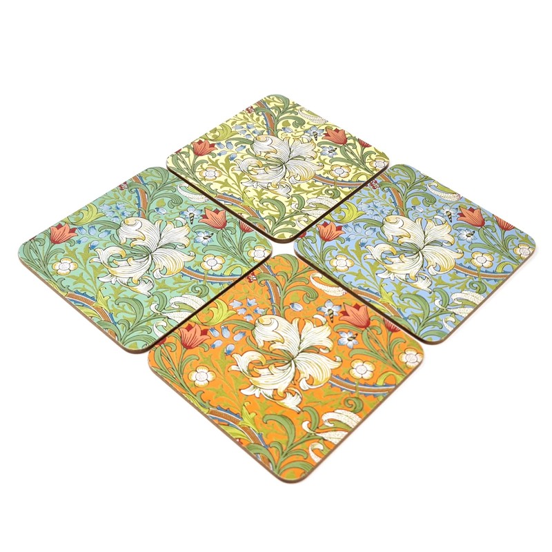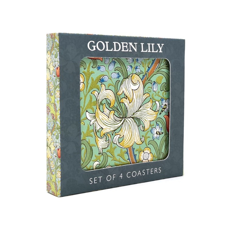 - Beautiful set of 4 coasters featuring the William Morris Golden Lily design.