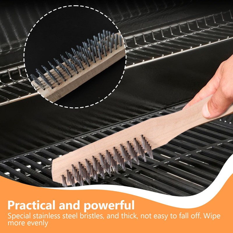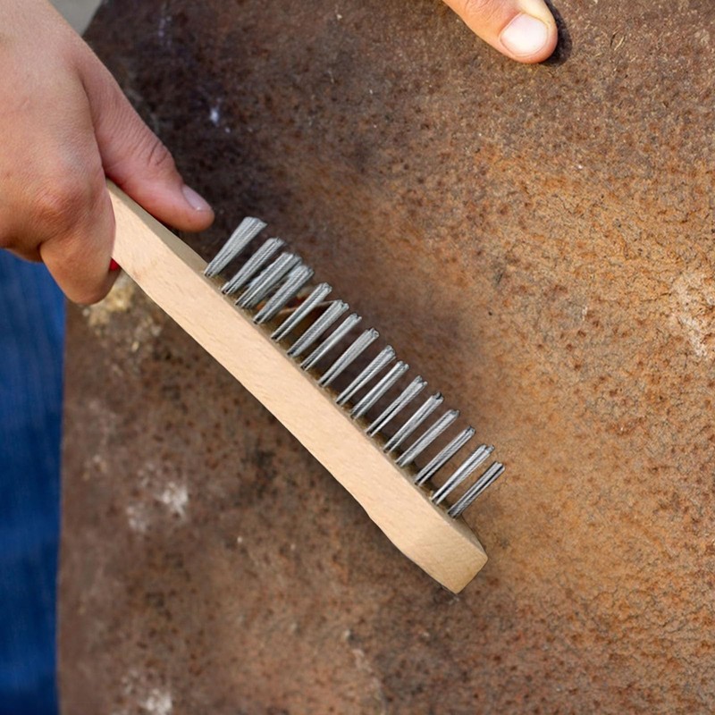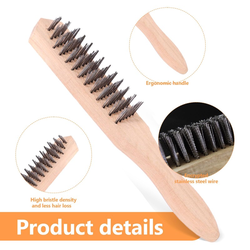 - Easy Operation The hand steel brush with wooden handle has been designed to be non-slip and durable. It features a smooth, thick rim without burrs and a comfortable grip that reduces hand fatigue and allows easy control.