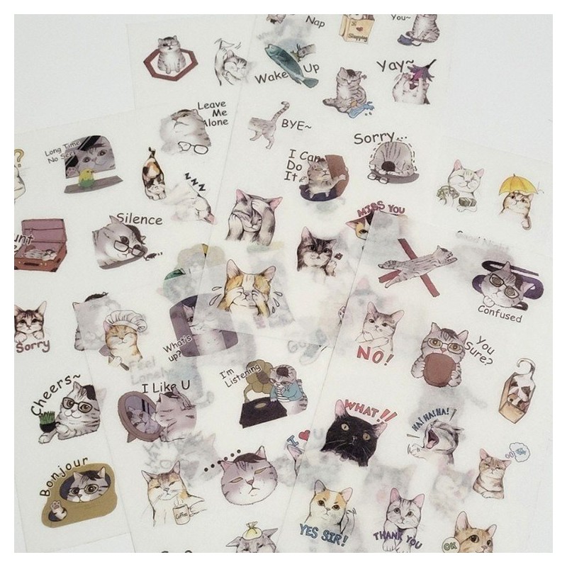 Set of 6 cat stickers Dakku sticker diary Dakku paper sticker decoration student photo card / 6매 세트 고양이 스티커 다꾸스티커 다이어리 다꾸 종이 스티커 꾸미기 학생 포카 포토카드