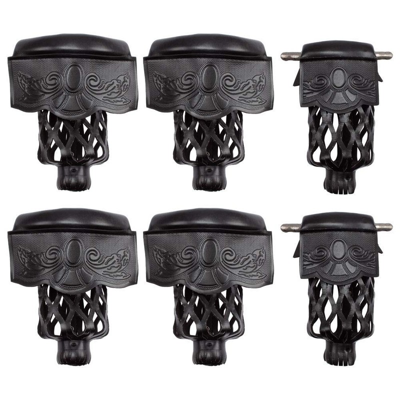 Set of 6 Heavy Duty Leather Billiard Pool Table Pockets (Several Colors & Styles Available) (Black - Shield)