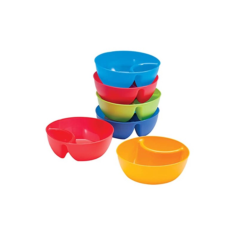 - The colorful small dipping bowls are perfect for fries and ketchup, chips and salsa, carrots and dip, crackers and cheese, chicken nuggets and ranch or anything you can dunk, dip and devour on your own