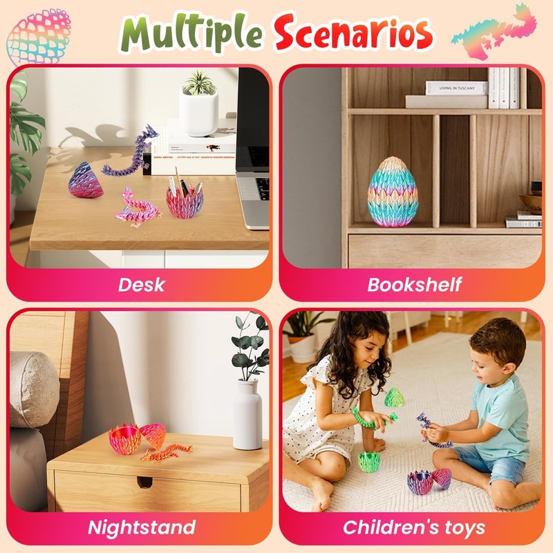 - Collection decoration: these 3D printed dragon eggs are not only fun, but are also a great addition to any collection. The attention to detail and creative design make them a sought-after piece for all dragon enthusiasts and are also perfect for interior design and car decoration