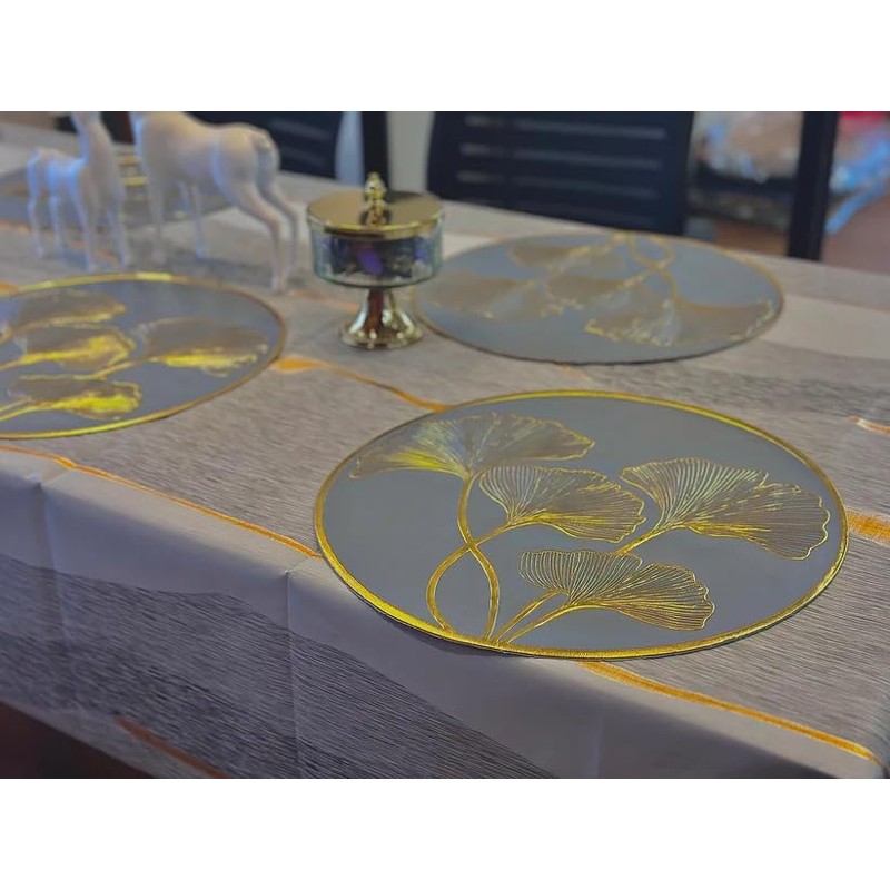 - Elegant Design: Features a stunning 3D embossed ginkgo leaf pattern with a metallic rose gold finish, adding a touch of luxury to any dining setting.