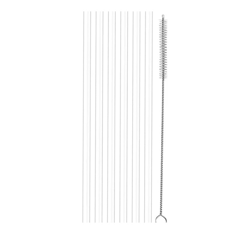 Set of 6 reusable straws with cleaning brush, 10mm diameter, plastic