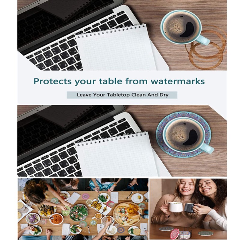 - HIGHLY ABSORBENT CERAMIC The absorbent coaster set is made of a special absorbent ceramic stone, which absorbs the ability better than sandstone, silicone or cork coasters. Each liquid is absorbed into the coaster to dry out the surface.