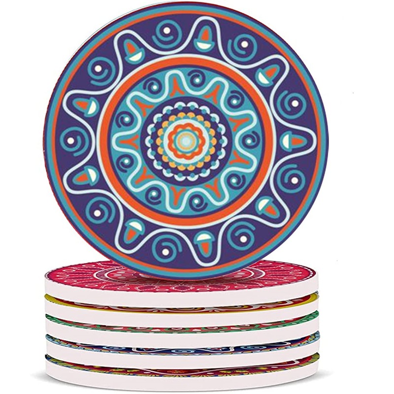 8 x different mandala pattern ceramic coasters.