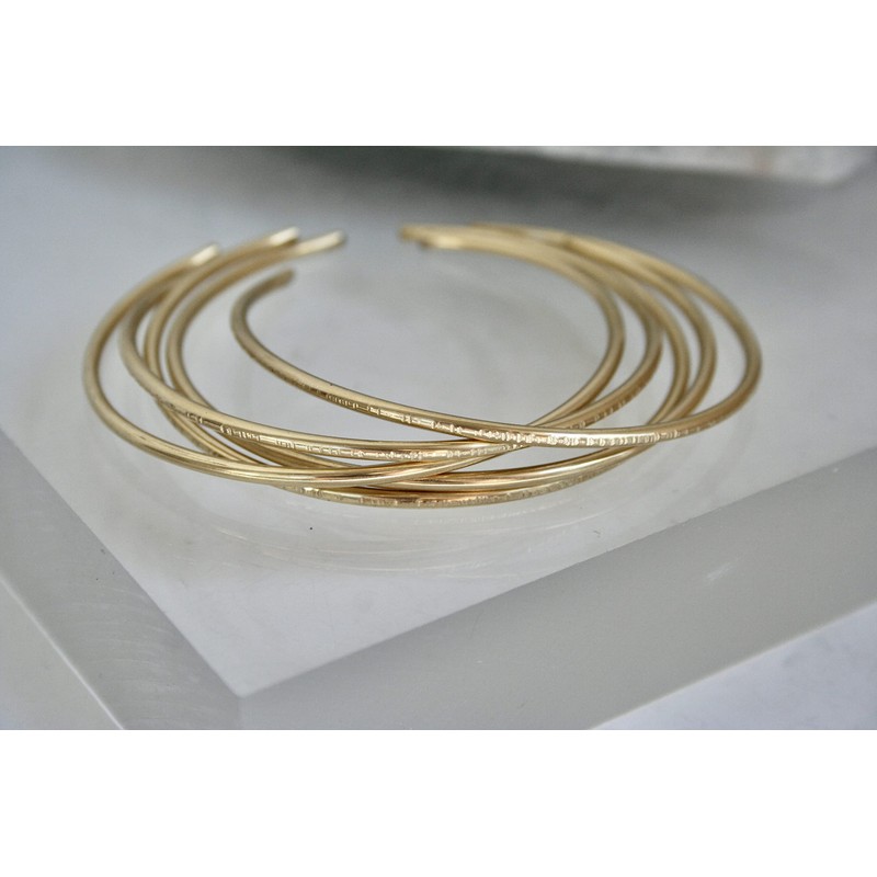 Set of Five Brass Stacking Cuff/Bangles Hammered & smooth textured (8 Inches)