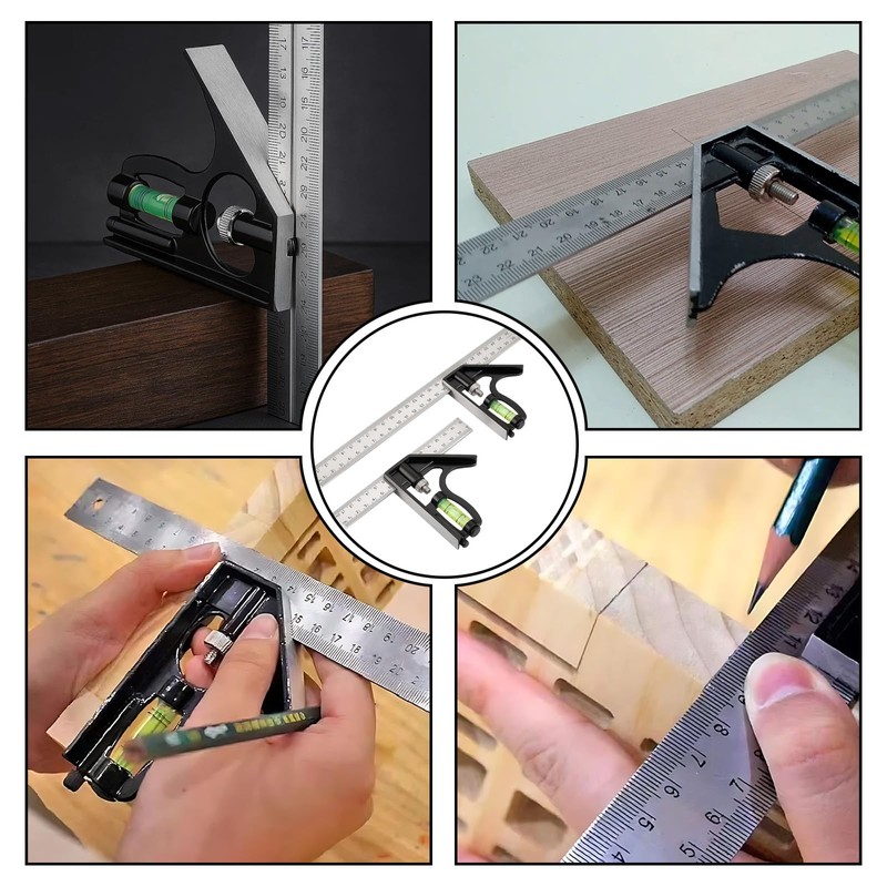 • 【Versatile Functionality】: Each square tool includes a spirit level and marking needle; Measure angles, check balance, and mark lines with one compact tool, eliminating the need for multiple measuring devices