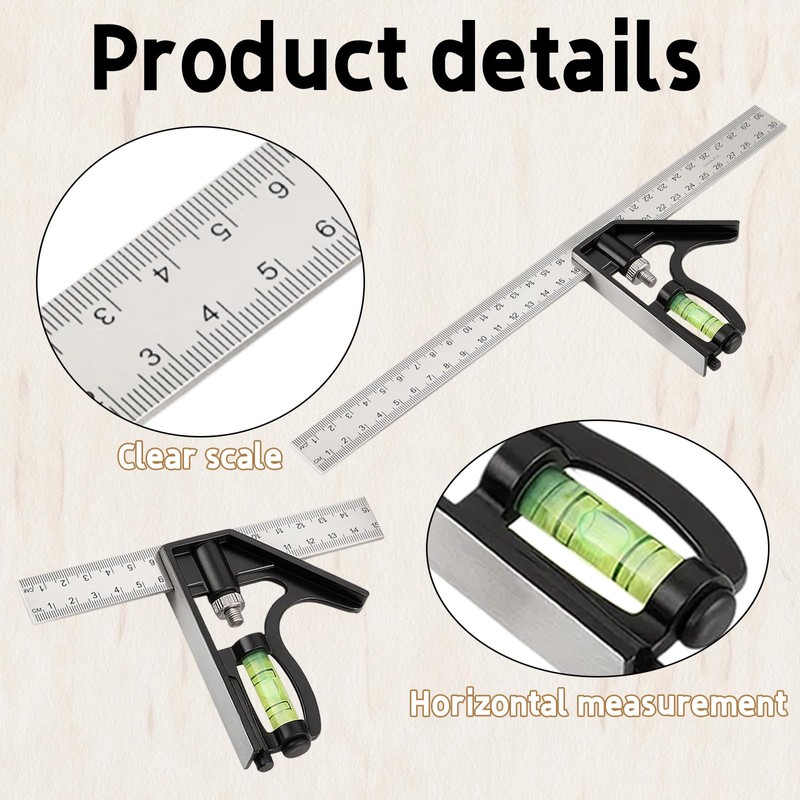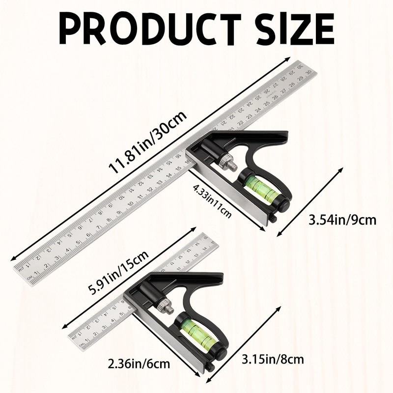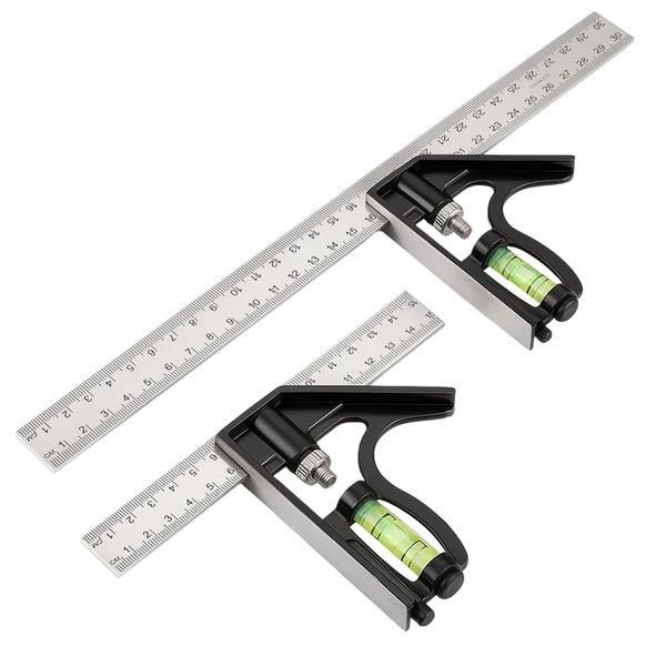 Set Square, 2-Piece Multifunctional Right Angle Ruler, Professional Combination Square Tool for Carpenters and Engineers, High Precision Measuring for Woodworking and Metalworking Projects 【Precision Measuring】: This set square tool features laser-calibrated rulers for accurate measurements; The combination square design allows for 45 and 90-degree angle checks, ensuring precise alignment for woodworking and metalworking tasks 【Durable Construction】: Made from high-grade materials, these square tools resist rust and wear; The sturdy build ensures long-lasting performance in various working conditions, from workshops to construction sites 【Versatile Functionality】: Each square tool includes a spirit level and marking needle; Measure angles, check balance, and mark lines with one compact tool, eliminating the need for multiple measuring devices 【Ergonomic Design】: The adjustable set square features a smooth sliding mechanism for quick measurements; The comfortable grip and integrated scribe make marking lines efficient and hassle-free 【Wide Application】: Ideal for professional carpenters, engineers, and DIY enthusiasts; Perfect for layout planning, metal fabrication, wood projects, and home improvement tasks that require accurate right angle measurements