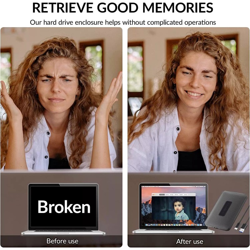 - [Recover Good Memories with External Hard Drive Enclosure] Do you also have important data in a broken computer? Just need to put the hard drive from your computer into 2.5 hard drive enclosure and you can see the data inside without any complicated operations. We're sure that you'll find lots of good memories with our laptop hard drive enclosure. The USB A output interface can be connected to a variety of hosts.