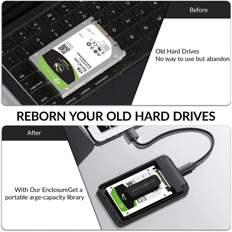 - [Giving New Life to Old Hard Drives]Put the old hard drive into our sata hard drive enclosure to get a new portable drive. It can be used as a portable high-capacity database to help you store large amounts of work data, lifestyle photos, games and movies, etc.