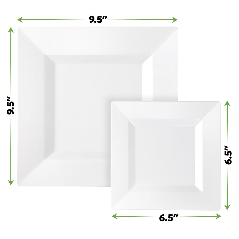 SETUP [100 Piece Combo White Square Plastic Plates - Premium Heavy-Duty 50 Disposable 9.5" Dinner Party Plates and 50 Disposable 6.5" Salad Plates