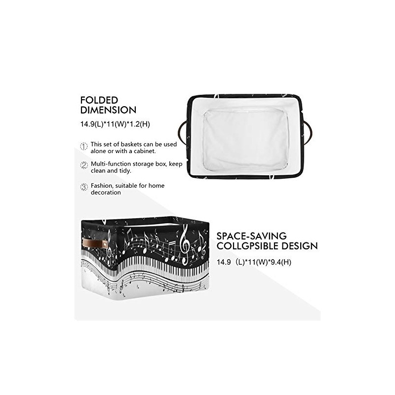 SEULIFE Abstract Piano Music Note Foldable Storage Basket, Large Collapsible Organizer Storage Bin Cube Toys Storage Boxes with Handles for Bathroom Kids Nursery Closet Storage, 1 Pack